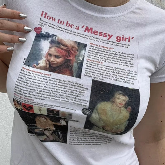 Y2K Aesthetic Summer Baby Tee Women Vintage Crop Top Korean Popular Clothes Emo Streetwear Gothic Harajuku Graphic Print T-Shirt